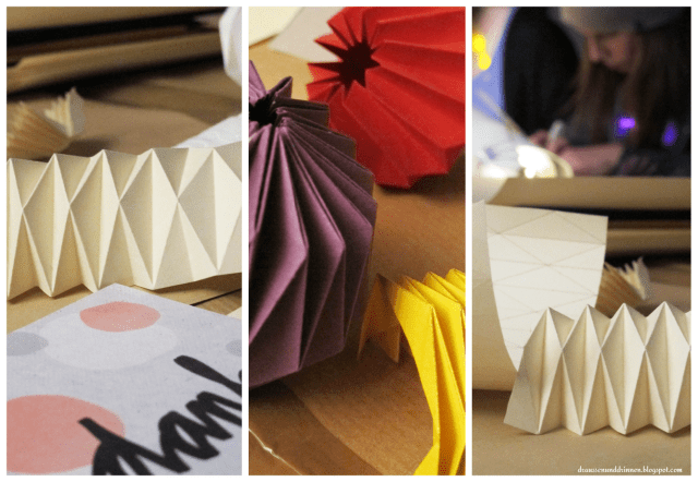 Eine besondere Herausforderung waren die Origamiobjekte, die Natasa von navucko mit uns gebastelt hat. Im Ergebnis sehen sie echt toll aus, verlangen einem vorher aber jede Menge Konzentration, ein bisschen Fingerspitzengefühl und vor Allem Geduld ab. Brachte man das alles auf, konnte sich das Ergebnis schon sehen lassen.