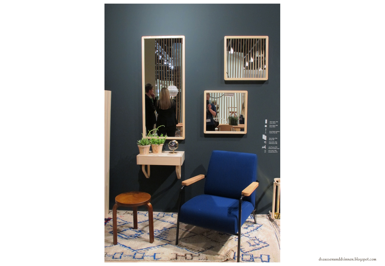 Und dann, ganz zum Schluss, ist es doch noch passiert. Ich bin einem Trend verfallen. Nein, nein, keine Sorge: Ich versuch’s nicht nochmal mit Zimmerpflanzen. Aber dafür mit einer dunklen Wand. Dunkelblau, um genau zu sein. Und hier am Messestand von Vitra hab ich sie entdeckt und bin der Wand total verfallen.