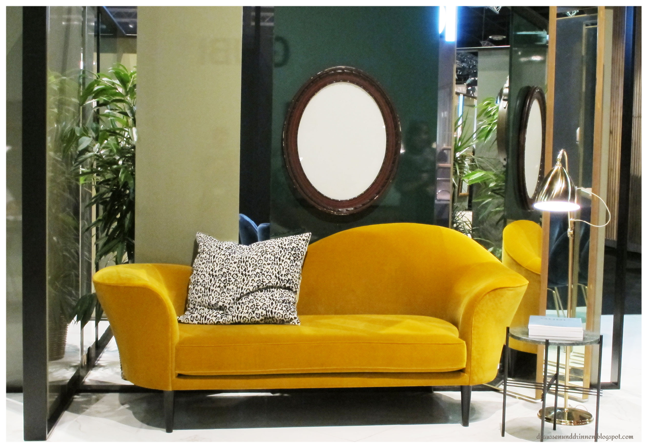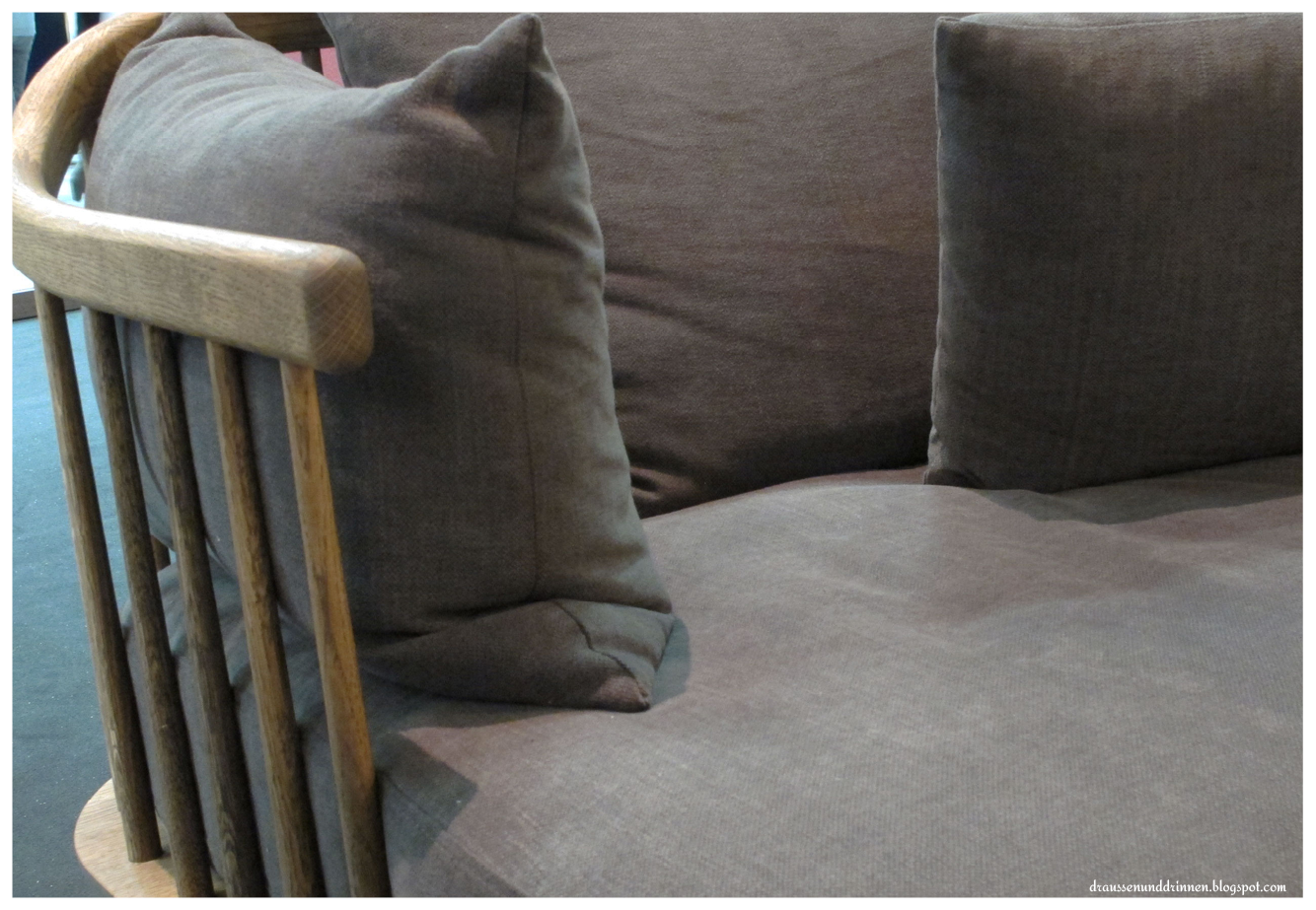 Keine Ahnung, ob das jetzt Trend ist, aber ich bin mir ganz sicher: Ich habe mich verliebt! In ein Sofa! Diese Mischung aus elegant geschwungenem Holz und natürlichen Stoffen ohne viel Schischi. Großartig!